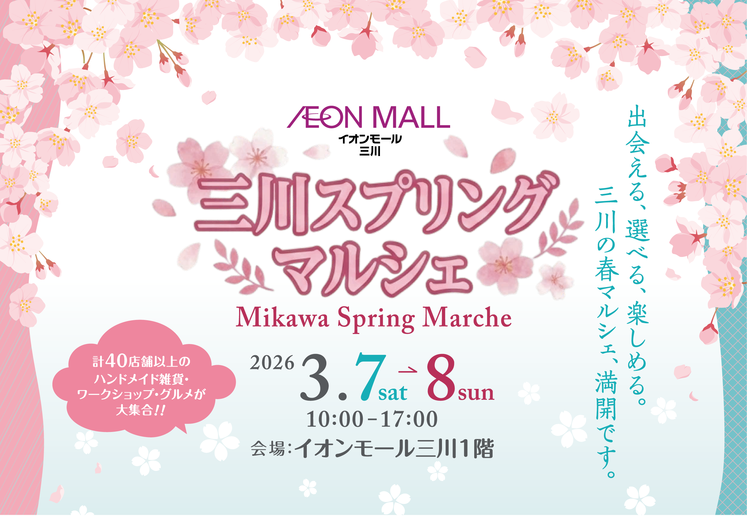 3月7日(土)・8日(日)の2日間、イオンモール三川 1階イベントスペースで開催される「三川スプリングマルシェ」スペシャルイベント情報解禁!!